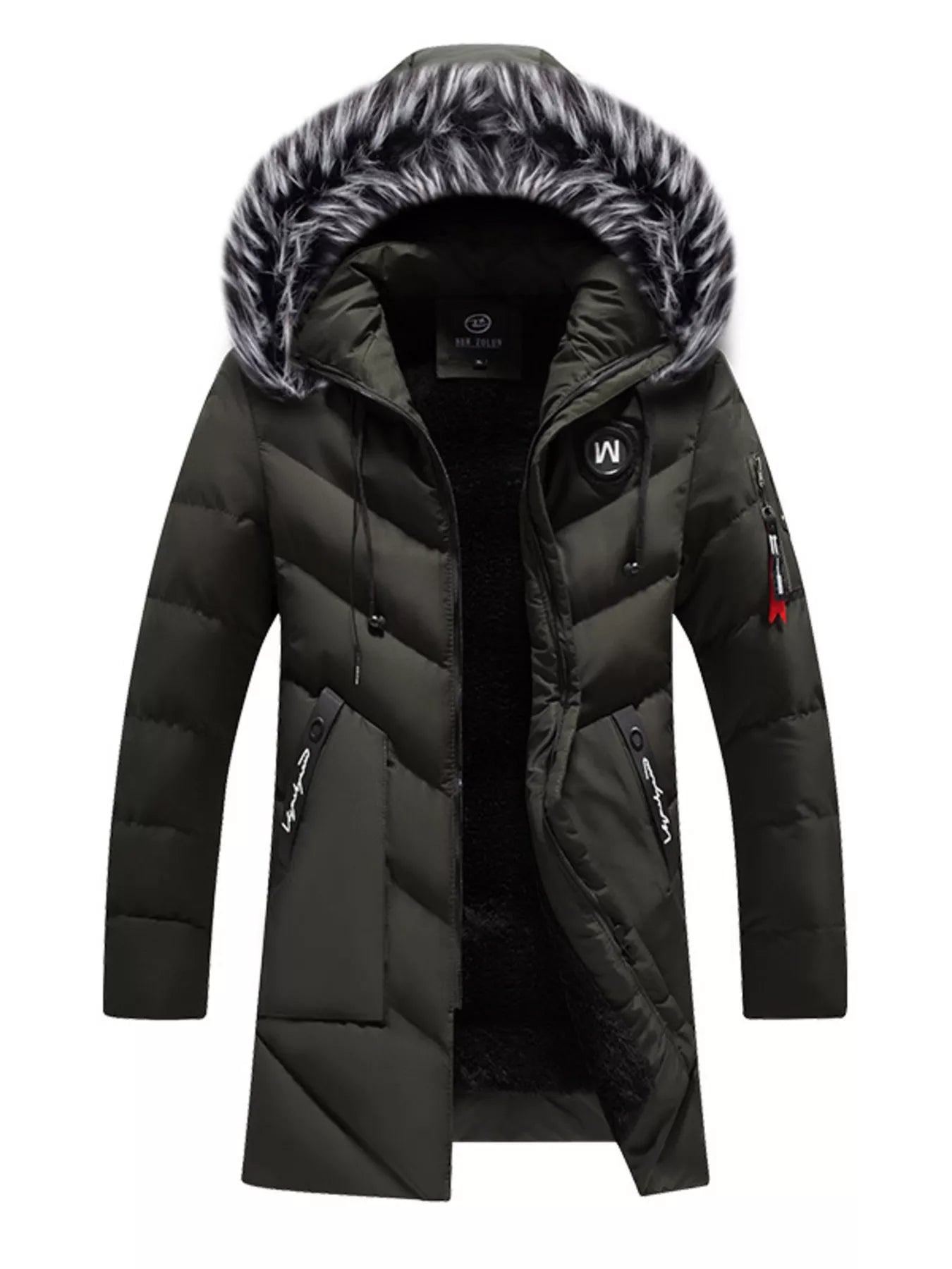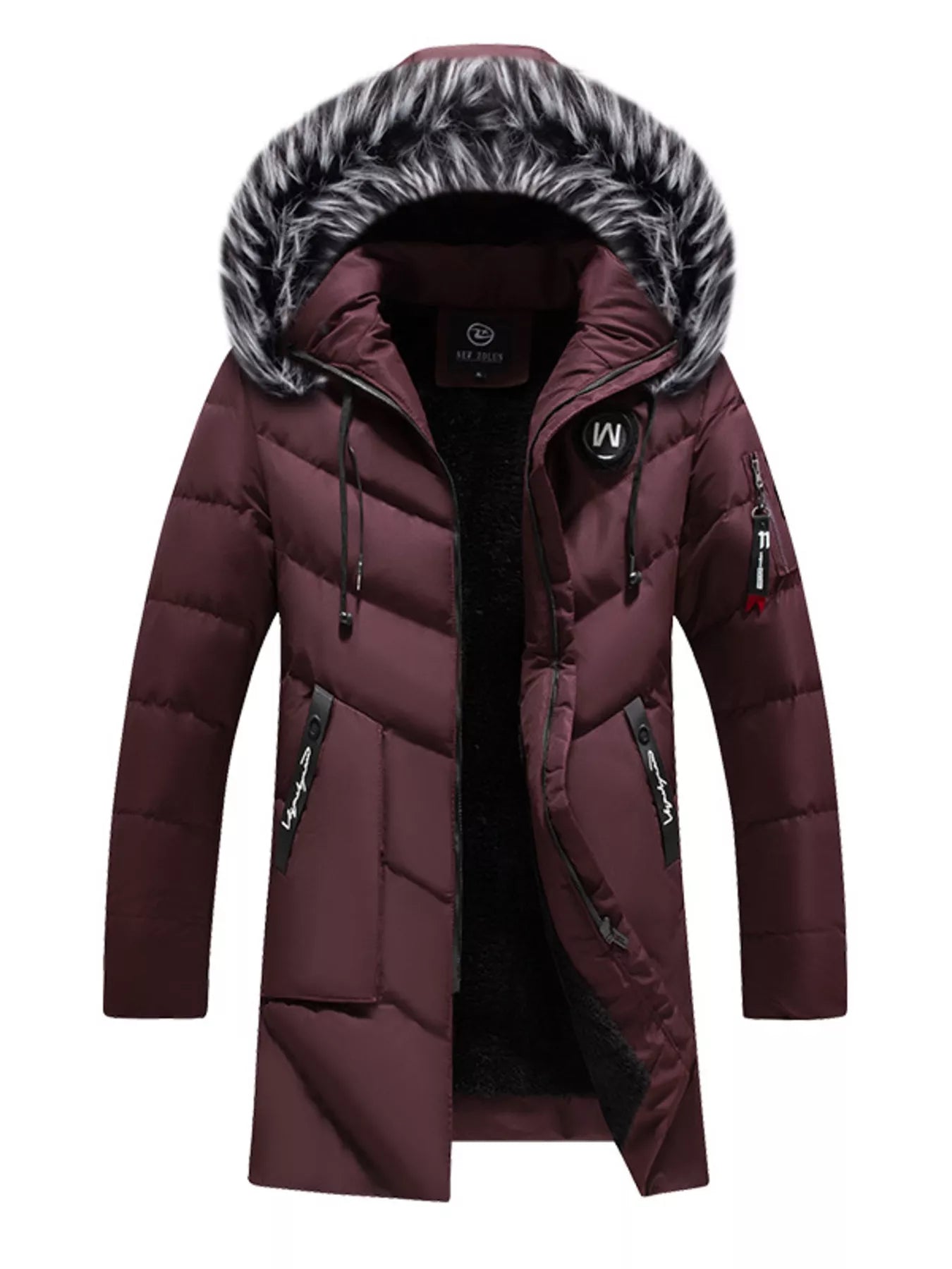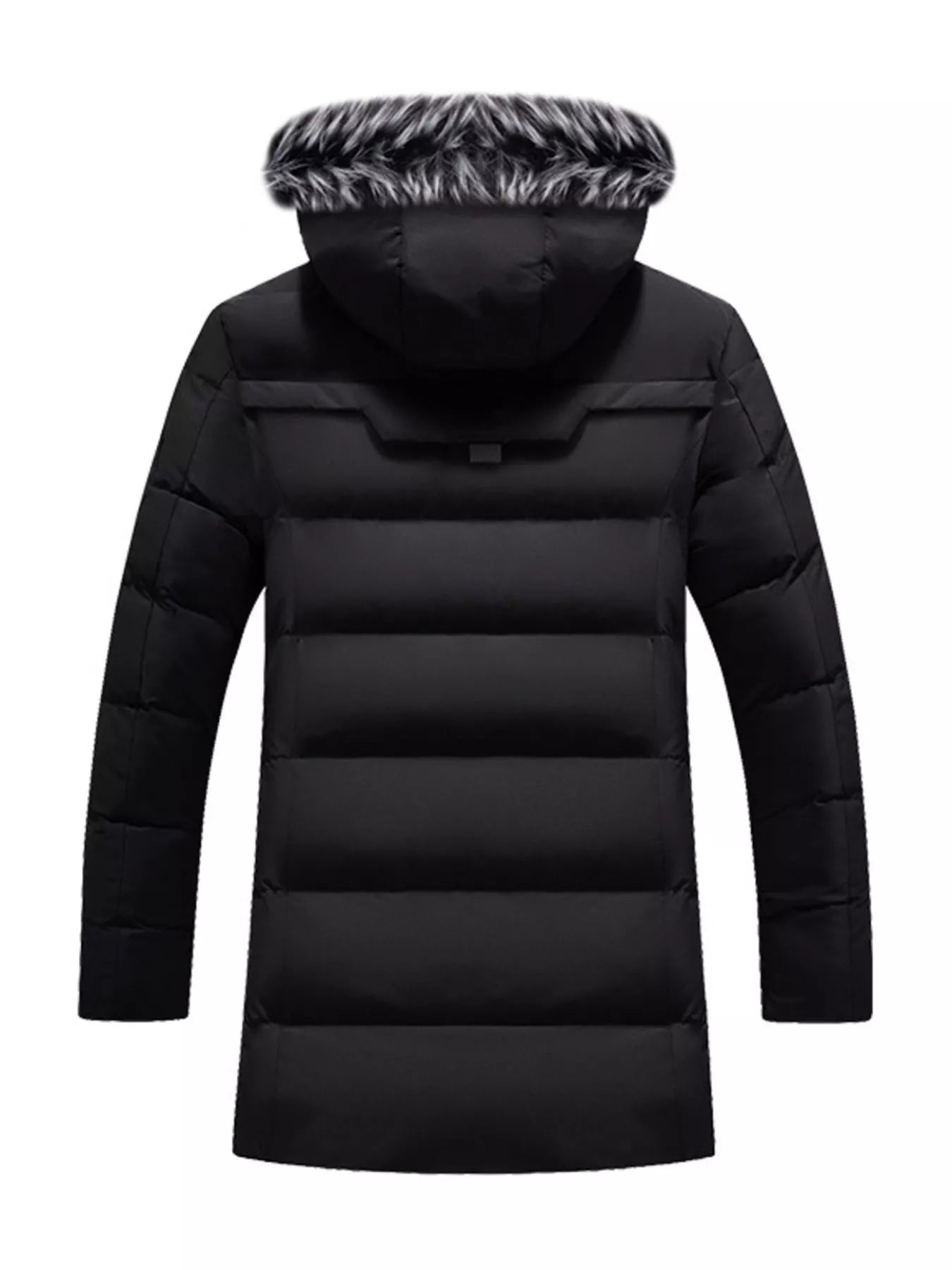 - Hood: Faux fur-trimmed hood for extra protection and style